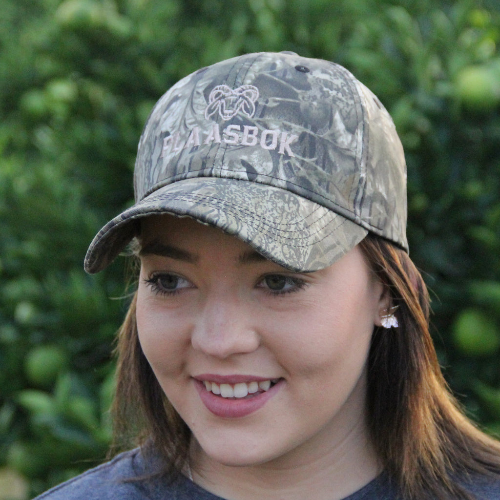 Sagte, liggewig, katoen hoed. Borduur: PLAASBOK met bok. Borduur kleur: Khaki.